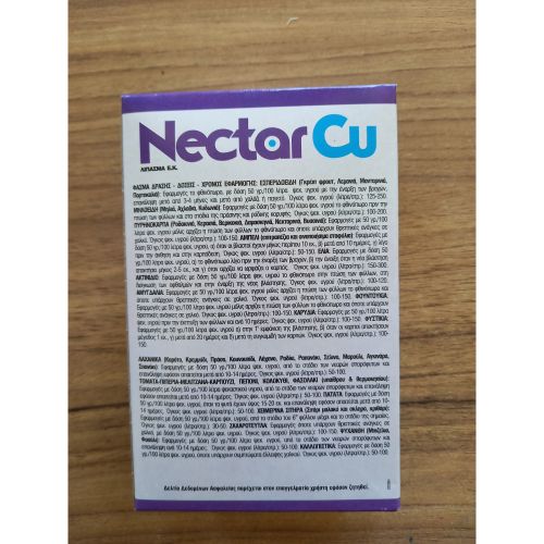 Το Nectar Cu είναι λίπασμα που περιέχει χαλκό (Cu) σε μορφή οξυχλωριουχου χαλκού 50% . Είναι κατάλληλο για διαφυλλική χρήση σε καρποφόρα δέντρα , εσπεριδοειδή , αμπέλι , κηπευτικά και καλλωπιστικά φυτά .